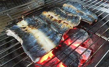 うなぎの頭と中骨を炭火でこんがりと焼き、煮出してタレを作ります。